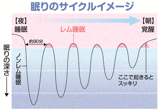 この図を見ると分かるように、私達は夜から朝にかけ約90分おきに